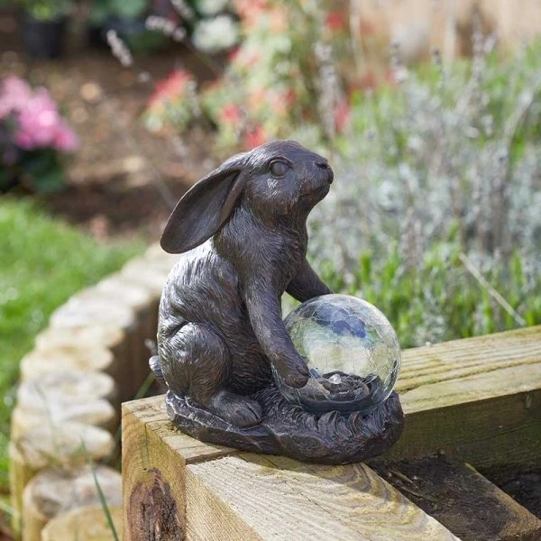 - Hand-painted polyresin with stunning crackle glass gazing ball